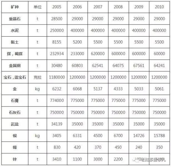 2005—2010年老挝主要矿产品估算产量(来源:正点国际)