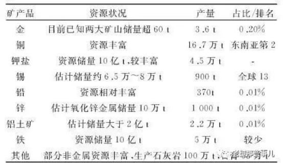 老挝的矿业发展总体比较落后,由于经济和技术等方面的原因,许多矿产资源并没有得到有效的勘探和开发。