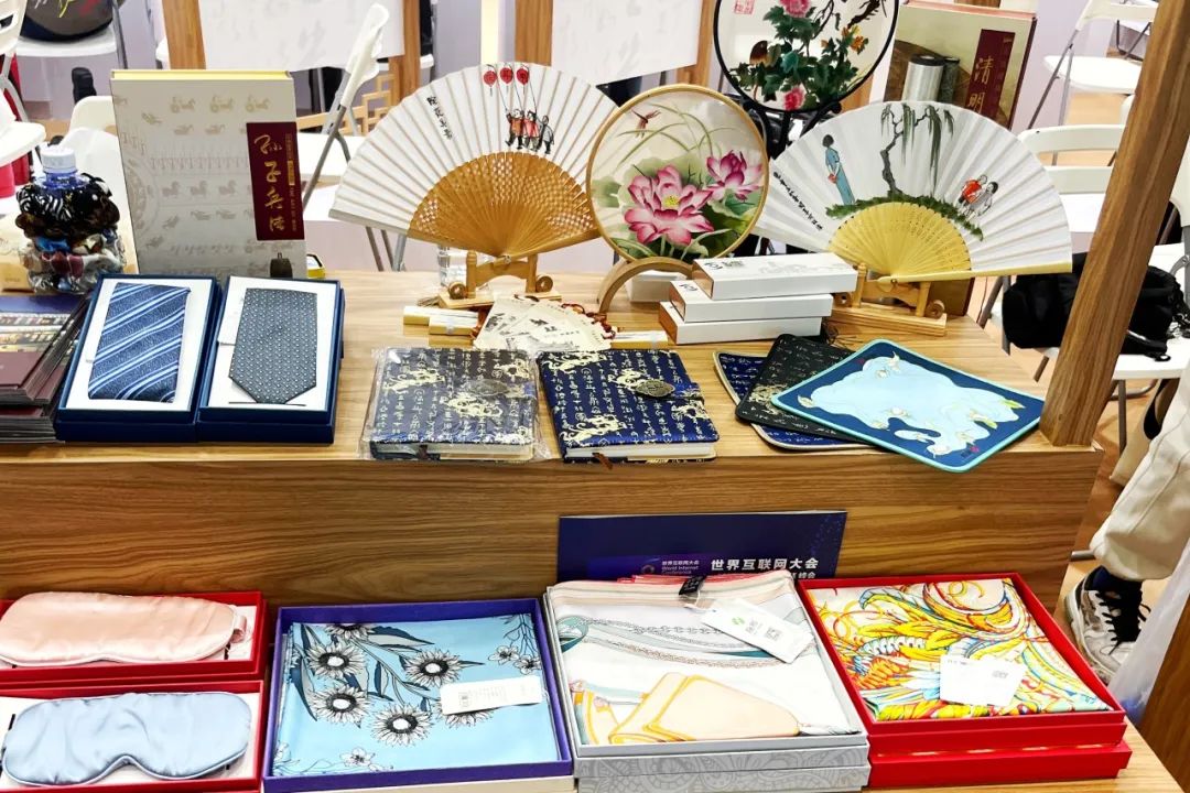 浙江丰达丝绸科技股份有限公司拥有自主研发的“茧乡”品牌,其手绘产品以精湛的技艺和优良的品质,广受市场青睐。此次,企业把领带、眼罩、丝巾、扇子等特色文创带到了现场。