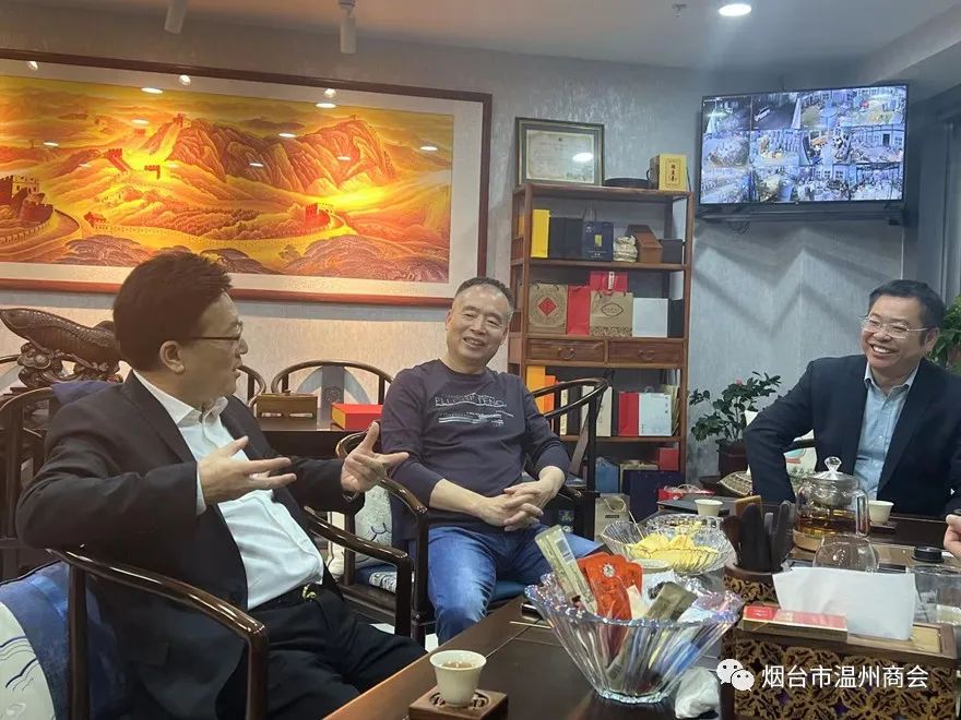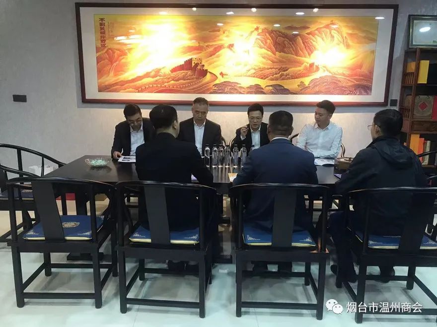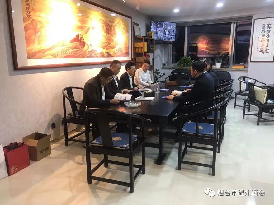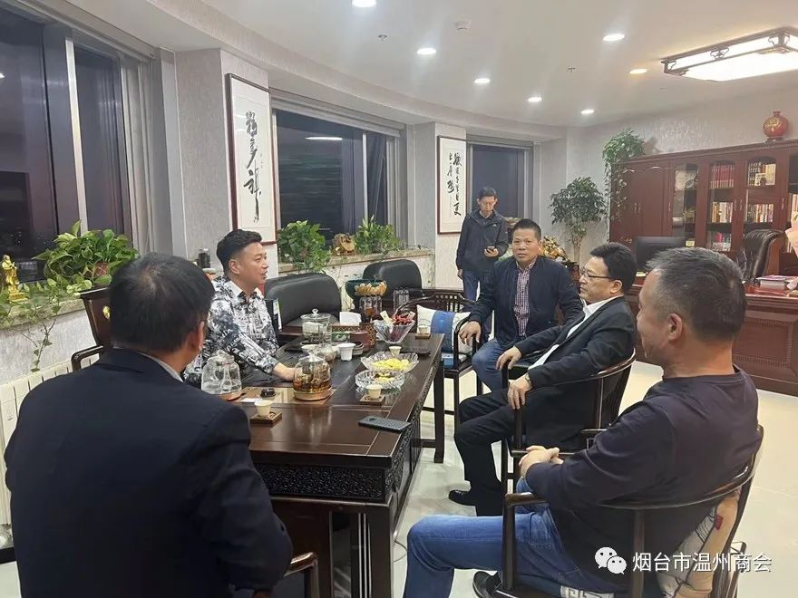 11月4日下午,中共温州市在鲁温商党工委副书记、山东省温州商会执行会长兼秘书长陈一锋,走访调研烟台市温州商会,与烟台市温州商会会长陈光晓,执行会长兼秘书长项光清,常务副会长兼新生代联合会会长屠少武,副会长、在鲁温商党工委委员麻荣灶,副会长倪庆伟等进行工作交流。