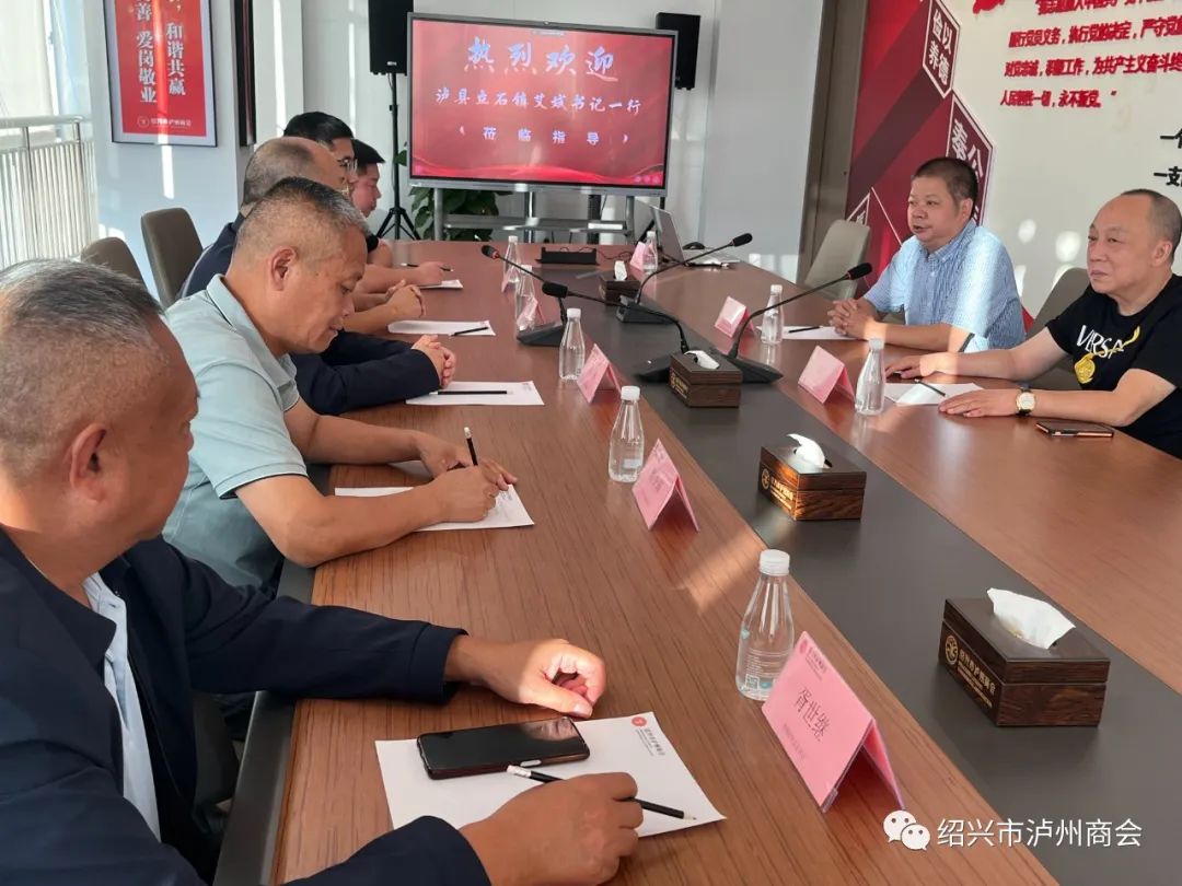 当天下午,艾书记一行莅临绍兴市泸州商会。会上,艾书记一行对商会的文化及运营模式表达了高度的赞赏。并表示泸县立石镇资源、交通、营商环境等方面优势明显,希望未来能和商会实现合作共赢。