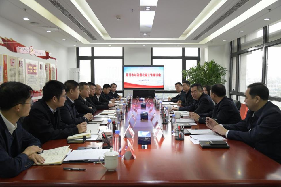 11月4日,黑河市委书记、市人大常委会主任李锡文,黑河市北安市委书记李华等一行六人到融通粮食产业发展有限公司(以下简称“粮产公司”)调研并进行座谈,融通农发党委副书记、总经理成子桥出席并主持会议。