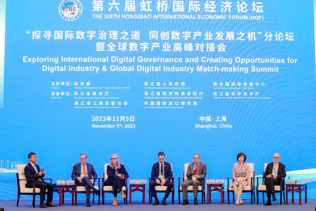为进一步巩固和推动与全球的数字经济和高新技术企业合作,商务部、浙江省人民政府、联合国国际贸易中心于11月5日下午在国家会展中心(上海)举办第六届虹桥国际经济论坛--“探寻国际数字治理之道,同创数字产业发展之机” 分论坛暨全球数字产业高峰对接会。