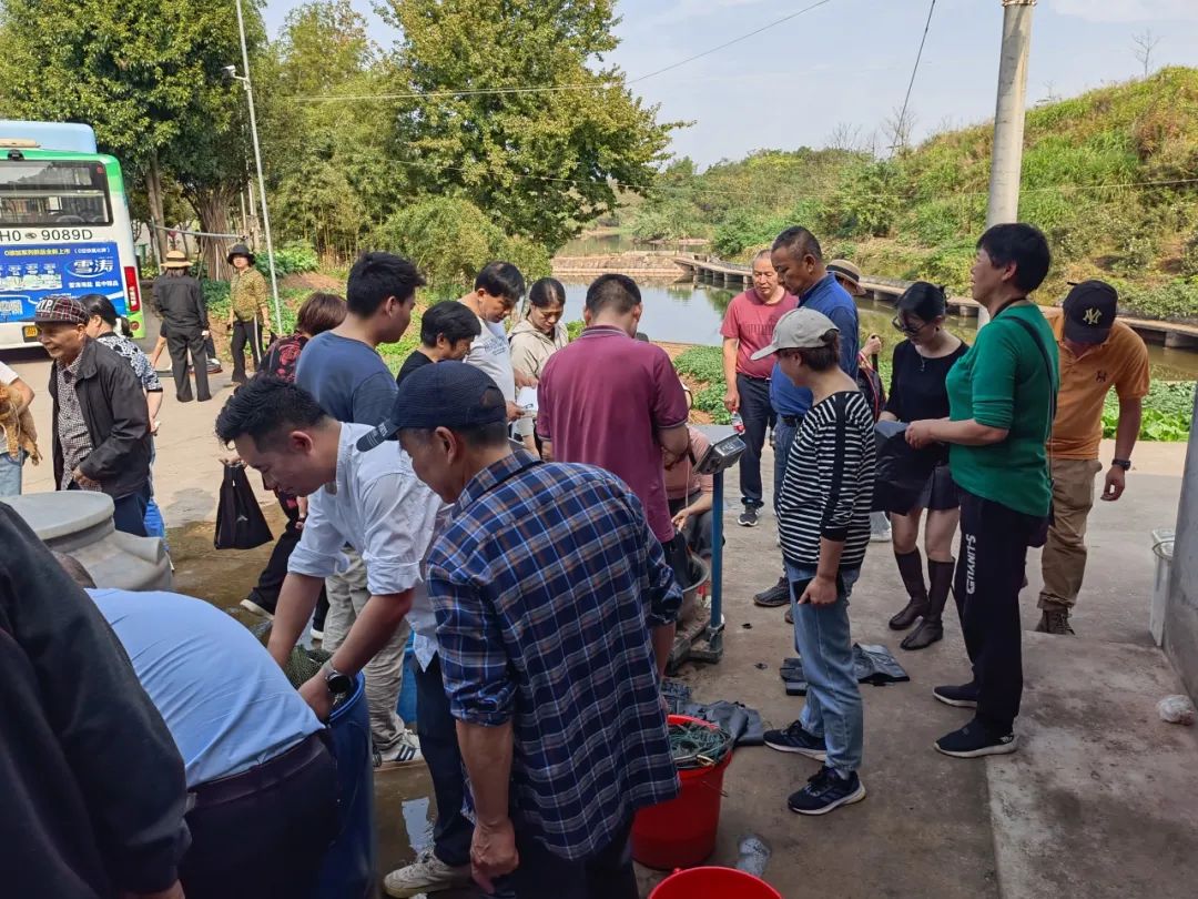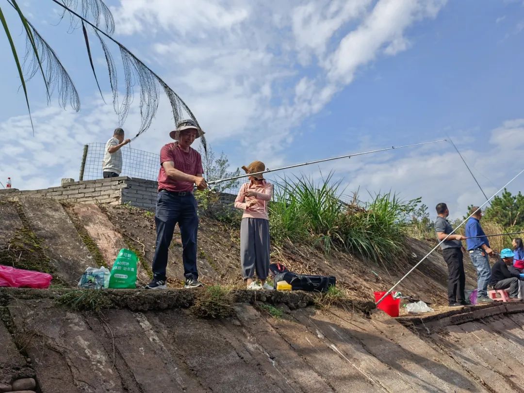 商会理事陈顺凑、十里丰老乡张光明,都钓了30来条,最为冒尖。陈顺凑是滿滿的专注劲,是啊,专注才能专业,专业才能业有所成。成绩一般般的是主流。年已80的老乡蒋锡兰这次钓到3条鱼,已很满意了,后来竟钓到一只甲鱼,好不激动,可手忙脚乱,结果遗憾的让它跑了。老乡杜承熙稳扎稳打,三个小时,不时有所收获,钓到半来斤重的6条鲫鱼,无愧于他稳如泰山的身材。老乡方行之中饭前只钓到3条,听他吹起来似乎很专业,什么钓鱼每天有最佳窗口期什么的,匆匆吃了中饭,又去钓,好像要争上游。蒋中其、吕为钢笃笃定定的到上次钓鱼的老位置,成绩只能说马马虎虎,他们不知道靠东边的水域才是黄金地段,大前年和今年冠亚军都产自那里呢!这次钓鱼有一个有趣的现象,就是“阴盛阳衰”,陈为阳、张韶华、徐海水夫妇都是如此,老公片鱼未钓,老婆却收获颇丰。他们找不出其他原因,以致于怀疑这里的鱼是不是公的多?胡立义是大家都很尊重的老同志,工作时兢兢业业,干一行爱一行专一行。可钓鱼却不怎么专业,渔具去年用了一次后就没动过,所以这次唯一上钩的鱼也让它跑了。他跟我说,他是来戏戏的。