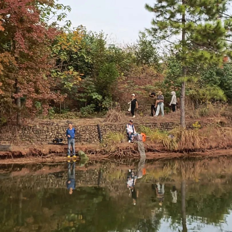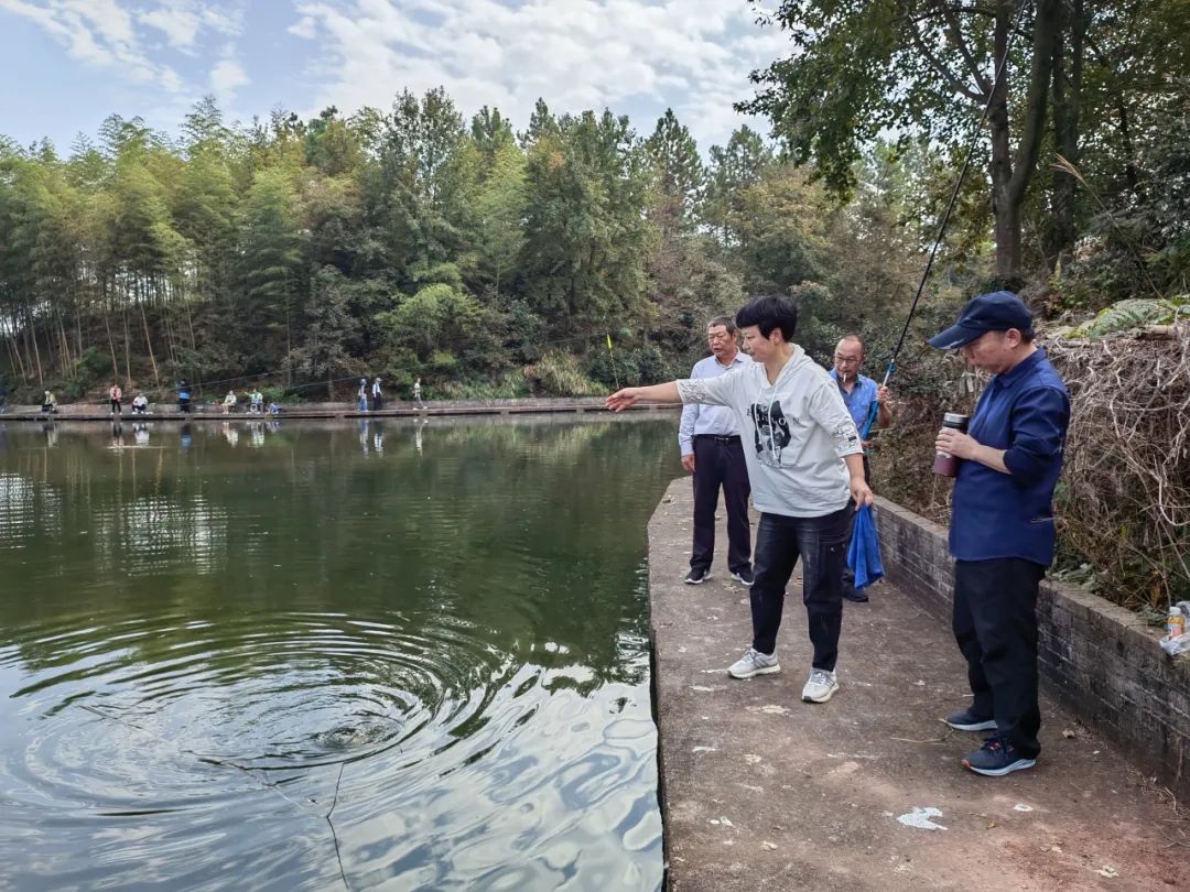 实际上,来戏戏的还大有人在。蒋方枢夫妇每次钓鱼活动都参加,每次都没带钓鱼竿,每次都由他那孝顺女儿开车专程接送。看看老朋友,听听乡音,开心哪!李航晓、李学航两位兄弟副会长都来了,都没钓鱼,他们跑到钓鱼人的中间,看上去比钓鱼的人还投入、还兴奋。会长杜跃进钓鱼也只是半投入状态,一会儿钓鱼,一会儿转转,夫人夏秀兰更是带着一帮美女团在五彩斑斓的水岸林间闲走,休闲又浪漫,真是一道亮丽的风景线!常务副会长单明江前两天才去东阳,昨晚特意赶回衢州,携夫人及家人们参加钓鱼活动。从态度看,他是这次活动的积极分子。