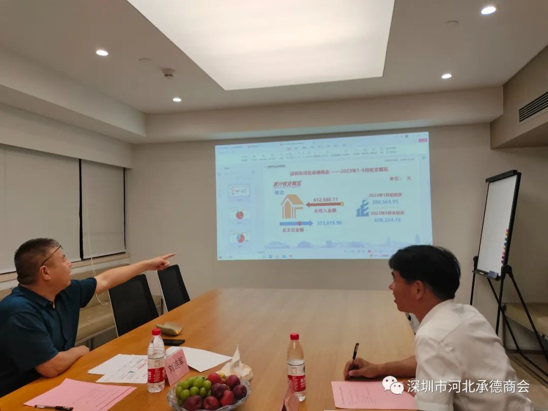 2023年11月4日下午,深圳市河北承德商会2023第三季度会长联席会在罗湖区爱国路金通大厦14楼商会会议室顺利召开,参加此次会议的有首席联席会长唐世民,联席会长张全文、刘连军,秘书长杨艳。联席会长高育慧、吕建军因在外地出差以视频方式参加会议。