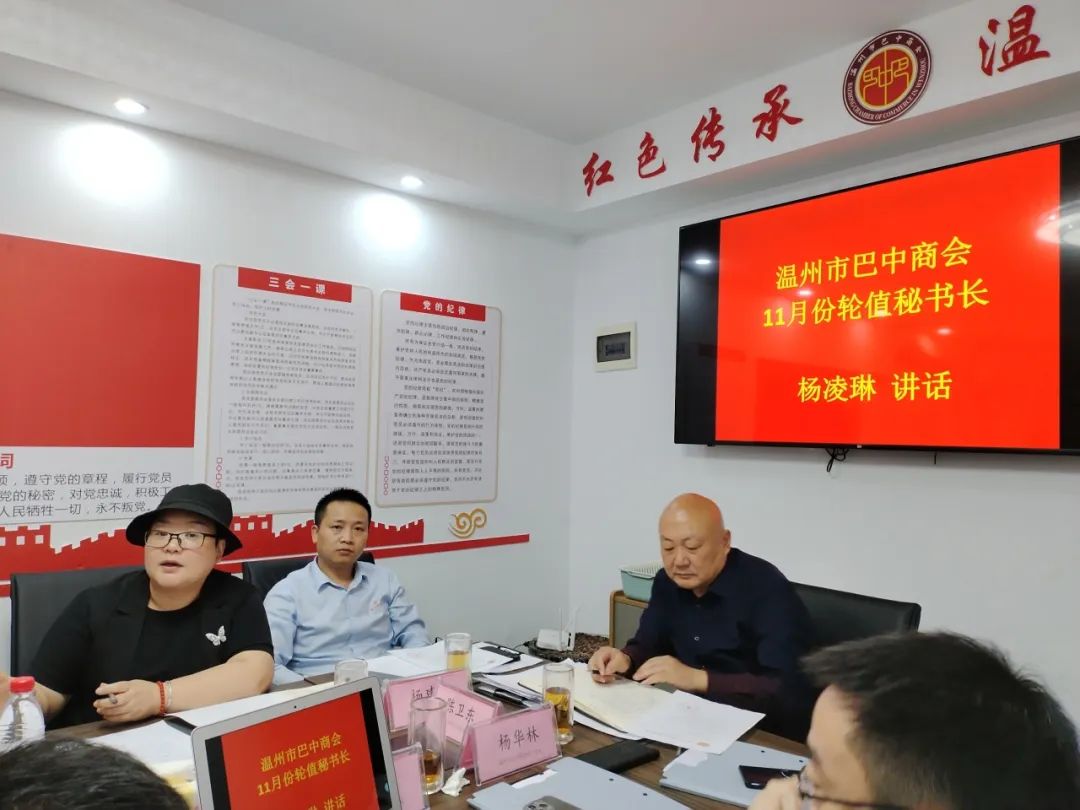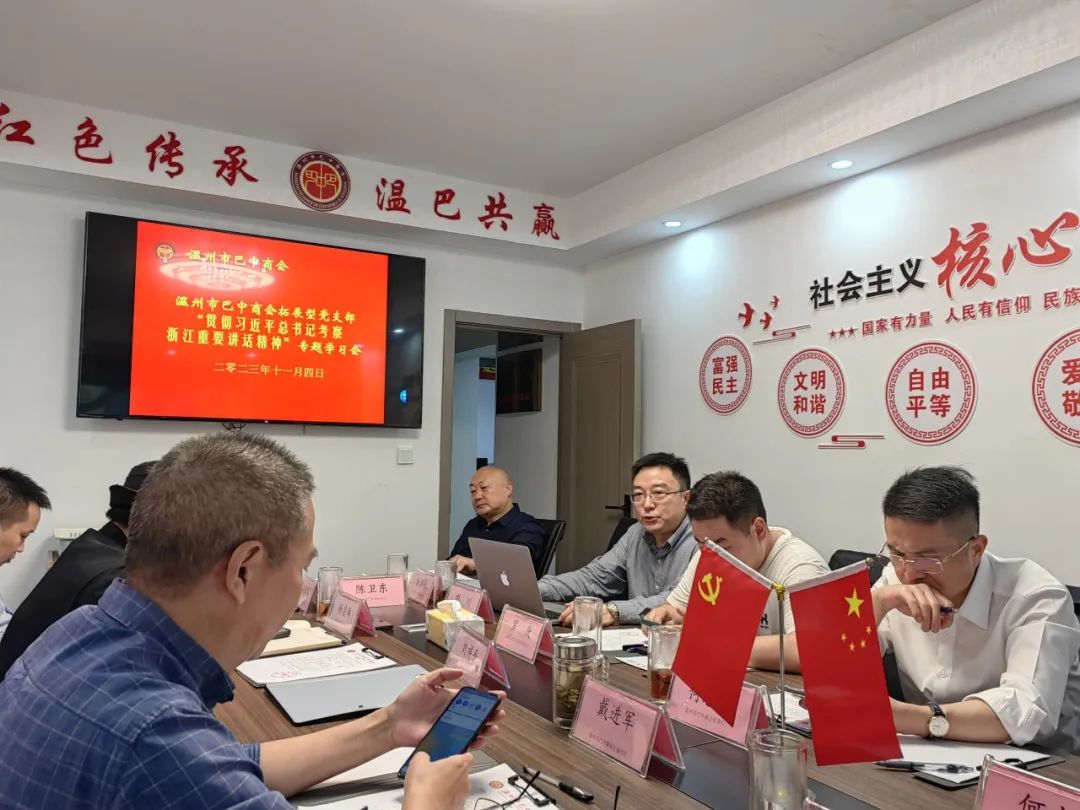 执行会长杨建华就成立中国共产党通江县农民工服务管理(温州)支部委员会及通江县温州农民工服务中心有关事项进行了说明,并就如何加强与商会相关职能的融合、互补、共享等进行了交流。