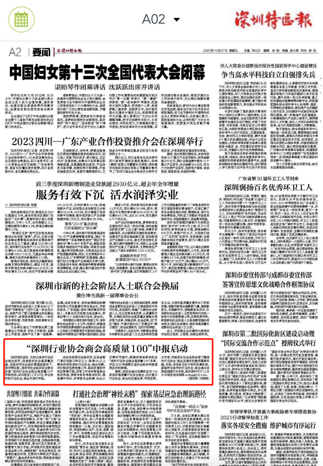 “深圳行业协会商会高质量100”