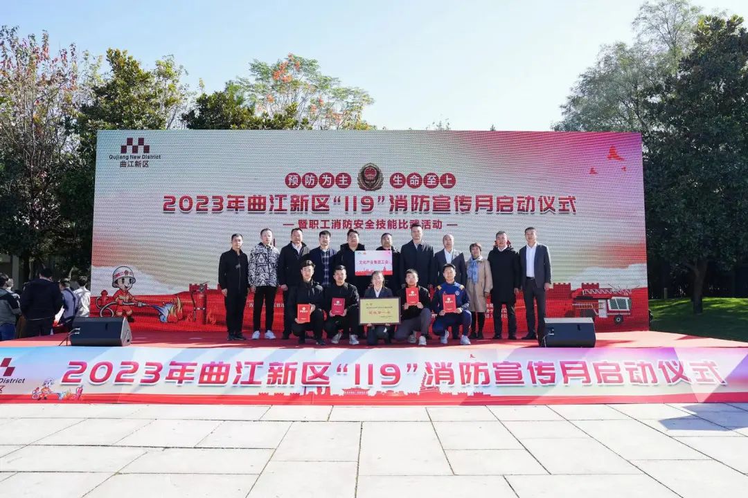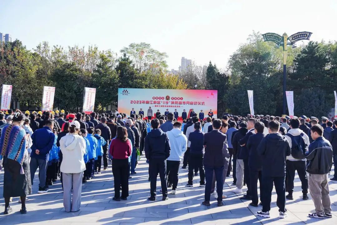 11月6日上午,曲江新区管委会在曲江池遗址公园中和广场举行“2023曲江新区‘119’消防宣传月启动仪式暨职工消防安全技能比武活动”,本次活动主题是“预防为主 生命至上”。