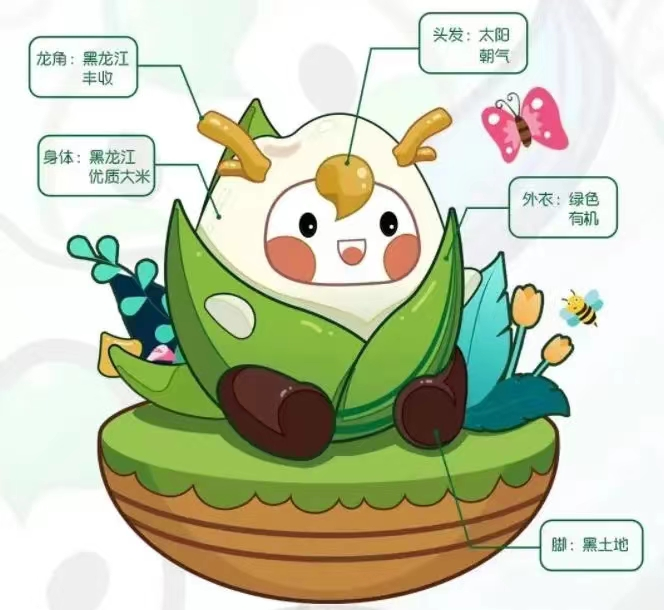 头上有犄角,身后有尾巴,整体浑圆,表情Q萌,点题黑龙江的名字与产业优势,以其作为博览会吉祥物,名曰“宝宝龙”。寓意着绿色食品产业是龙江经济之宝,也是人类康之宝。同时宝宝形象象征着孕育着勃勃生机的种子,寓示黑龙江黑土良田的纯粹天然,更伏笔绿色食品产业具有强大的生命力和成长空间,今日之宝宝龙,未来之腾飞巨龙,绿色食品产业正是值得我们为之奋斗和守护的伟大事业。