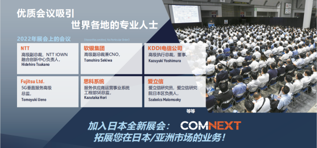 由世界著名展览公司励展博览集团举办,是日本唯一专业通信展览会。本展会的愿景是:成为全球展商向往的交流胜地,成为吸引全球用户的国际展会,创造下一代技术的商机。