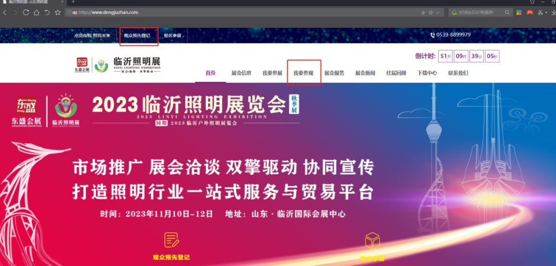 电脑打开浏览器输入网址:http://www.dengjuzhan.com/,进入临沂照明展官方网站。