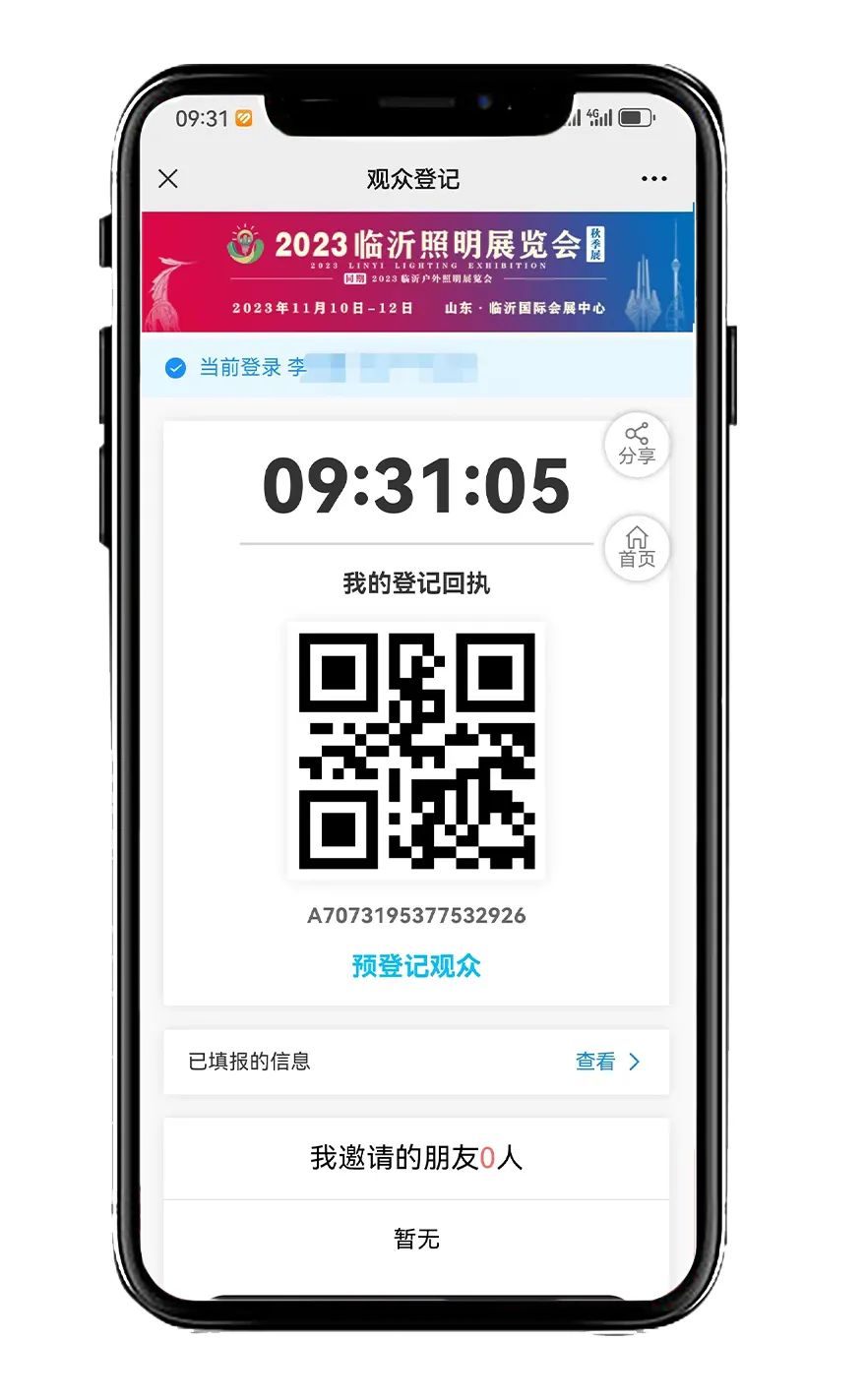 如若大家忘记截图保存已登记二维码,通过临沂照明展公众号,点击右下角的菜单栏“参观登记”再次进入观众登记系统,点击“我已登记,打开回执”可查看报名成功二维码。