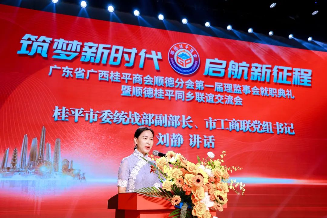 中共桂平市委统战部副部长、市工商联党组书记刘静代表家乡人民对大会的举行表示祝贺,她高度评价了广东省广西桂平商会顺德分会在2023年所做的工作,对在粤桂平籍企业家取得的成绩表示肯定和赞赏,同时也介绍了家乡桂平在“五大产业”、“五大园区”,以及新兴产业等经济成果,期待在粤桂平籍企业家常回家看看,更多地参与桂平家乡建设和发展。她希望顺德分会展现新风貌、再有新作为,以更大的力度宣传家乡,成为回馈家乡的“最大助力者”,为桂平家乡发展做出新的贡献。