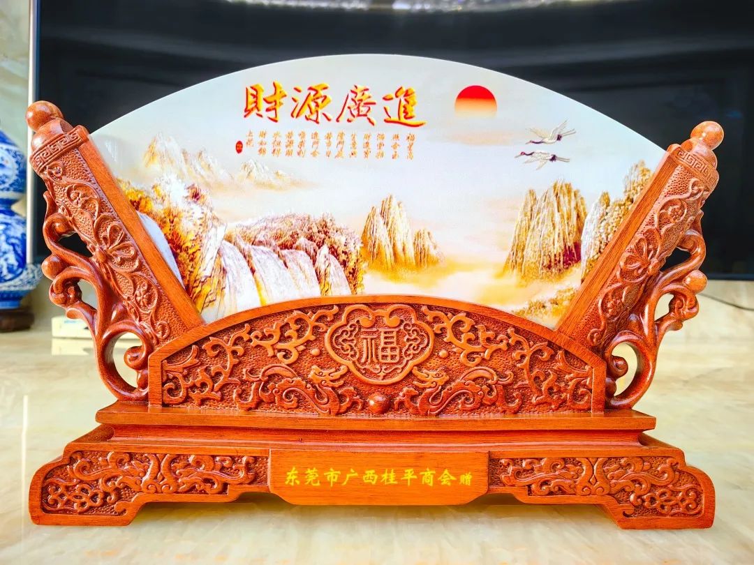 谭建林代表商会为广东省广西桂平商会顺德分会赠送庆贺礼品。