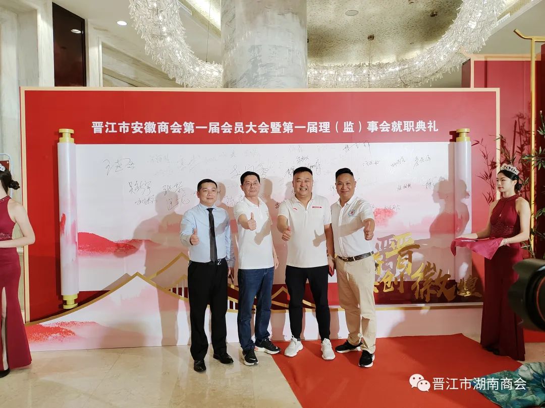 晋江市湖南商会名誉会长兼秘书长姚固军;监事长邱绍恒;常务副会长李柯义;执行秘书长梁星受邀出席庆典。