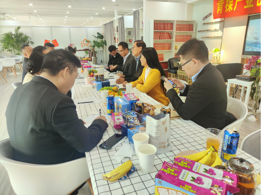 西藏农投特色产品公司总经理王琳以及西藏德琴产品公司、西藏福昙负责人分别对青稞产品特点、应用开发情况、销售现状以及存在的问题做了详尽介绍。