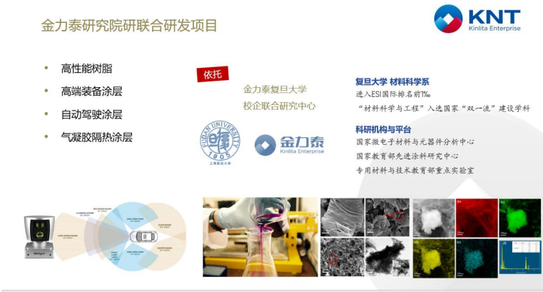 作为民族汽车涂料品牌的佼佼者、沪深两市唯一以汽车OEM原厂涂料为主营业务的上市企业,金力泰2021年成立了研究院以及与复旦大学签约共建“先进涂层材料校企业联合研究中心”,进一步打通“研发端”与“应用端”的关键节点,使得企业朝着多元化发展、核心技术驱动的方向发展,在“双循环” 的大背景下迎难而上、担当使命。