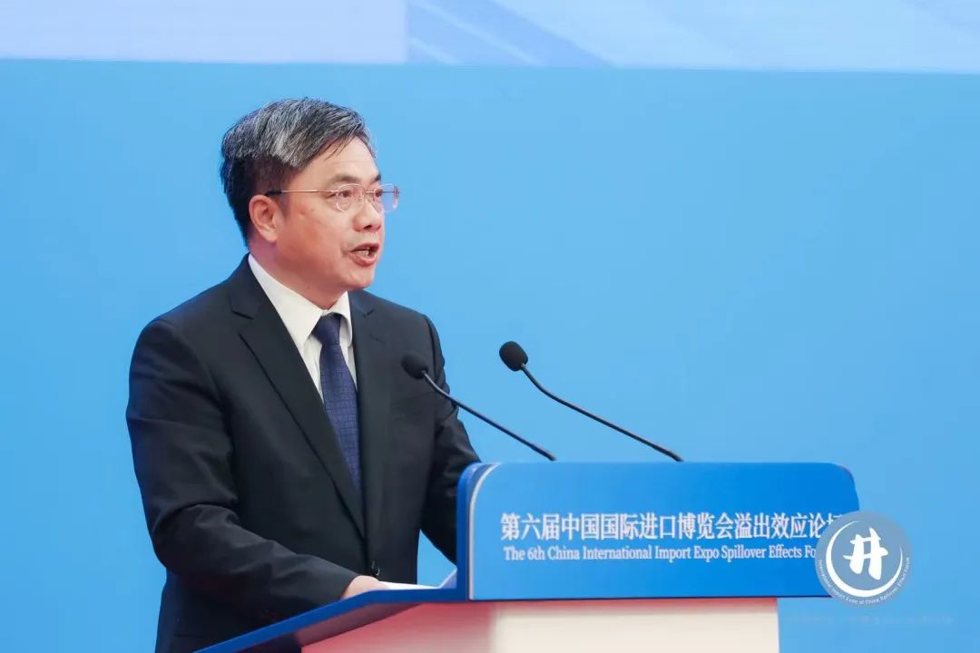 2023年11月7日下午,第六届中国国际进口博览会溢出效应论坛将在上海国家会展中心主会厅举办。本届论坛的主题是“引进来&走出去:新技术与新动能”,重点发布进博溢出效应指数和长三角领跑硬核产业创新研究成果,探讨进博会对长三角乃至全球的溢出效应,从数据的角度深度展现进博会作为世界公共产品的重要作用。上海市政协副主席/党组副书记肖贵玉,上海市公共关系协会会长、上海市委原常委、原统战部部长沙海林致欢迎辞;中国商务部原部长陈德铭发表主旨演讲。
