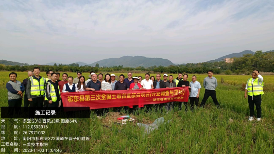 近日,核地质所矿产资源勘查分所承接了政府采购项目——祁东县农业农村局第三次全国土壤普查外业调查与采样服务。该项目合同金额为50万元,共需布设 368 个表层土壤采样点,工期40天,预计12月15日完工。