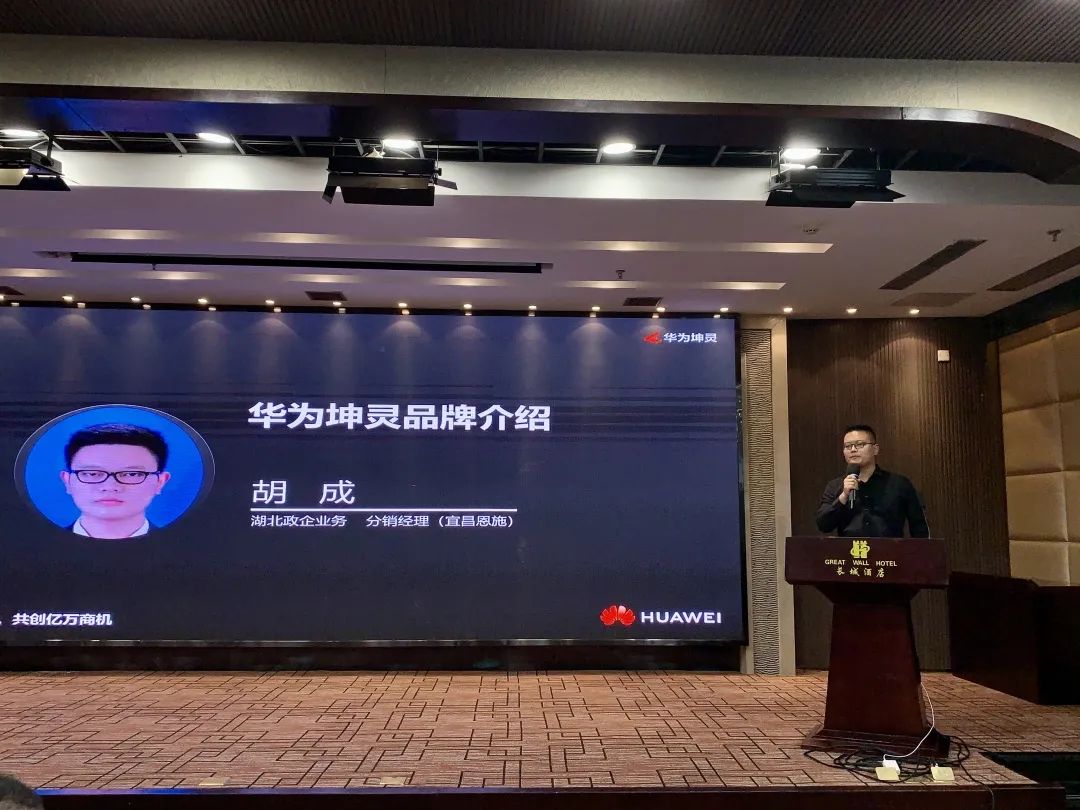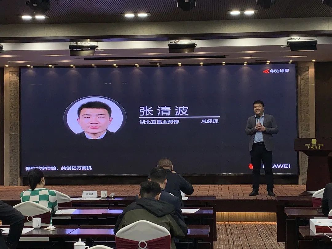 会议开始后,湖北宜昌业务部总经理张清波致开场词,对大家的到来表示热烈欢迎,并介绍了华为当前的业务赛道以及相关政策。同时也期待通过华为分销坤灵品牌的推广与销售,给宜昌广大的合作伙伴带来新的利润增长点,最终实现双赢的局面。