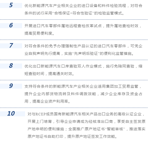 加强政策宣传,对获得海关高级认证的新能源汽车产业相关企业落实设立协调员等便利化措施;加大认证培育力度,对符合条件的企业优先开展AEO认证。