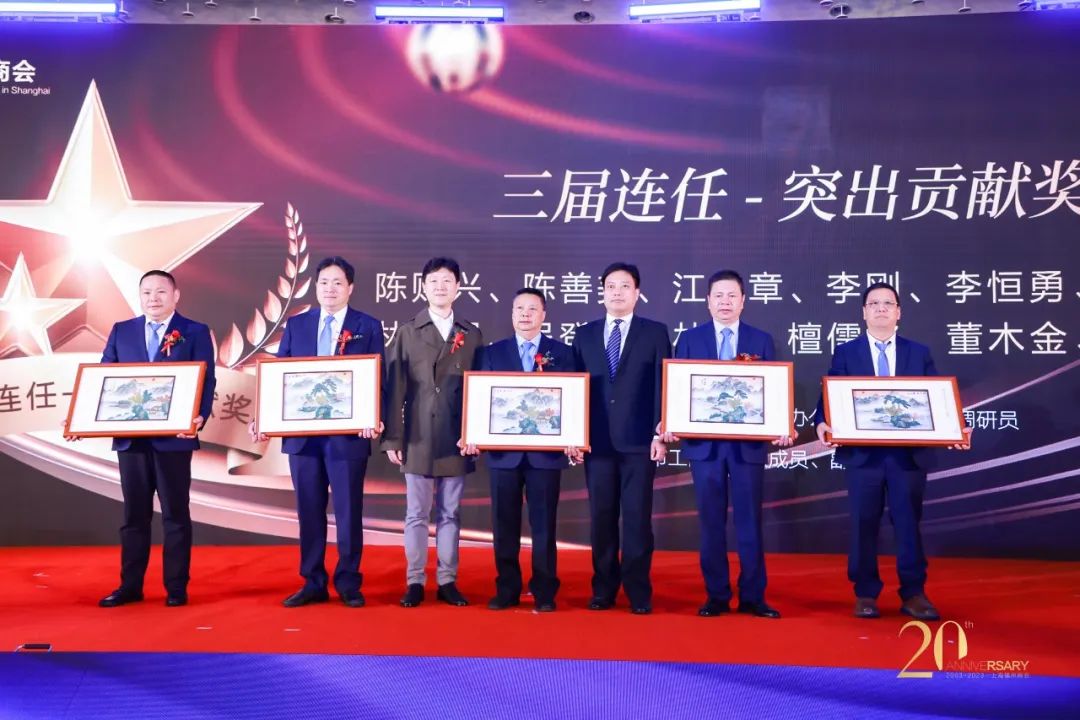 随后,由与会领导分别对荣获特别功勋奖、特别贡献奖、突出贡献奖、服务商会功勋奖等四组获奖者进行颁牌表彰。