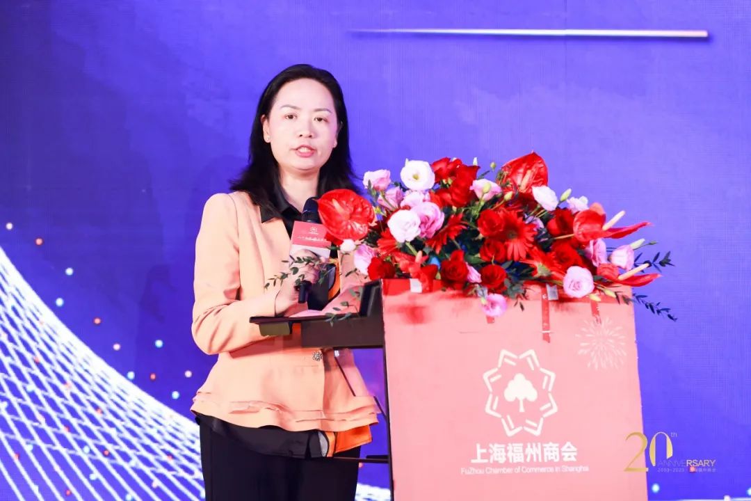 在热烈的掌声中,福州市委统战部副部长、市工商联党组书记陈锦女士登台致辞,代表福州市委统战部、工商联祝贺商会二十周年庆典大会,带来家乡人民诚挚的问候,为商会在促进两地经贸合作和人文交流所作贡献点赞,并对商会今后的工作提出了新要求,指明了发展方向。