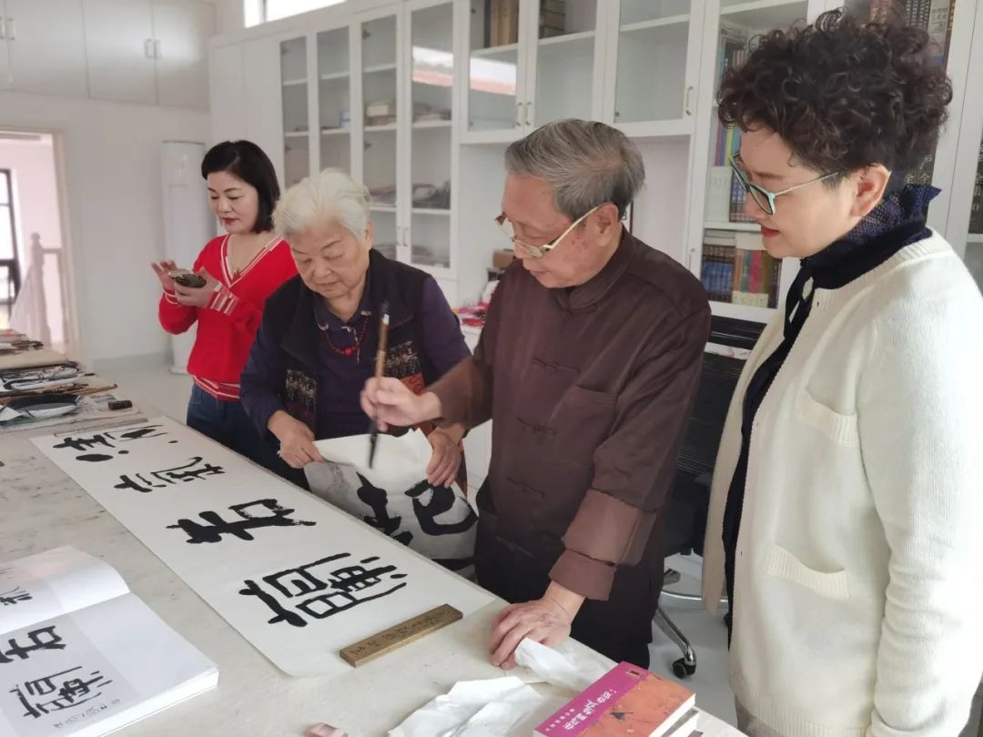 参观了画苑后,85岁的崔老又带领大家来到他的画室,精神抖擞地挥毫泼墨,现场书写书法作品赠送给大家,令到场的每一位女企业家感动不已。