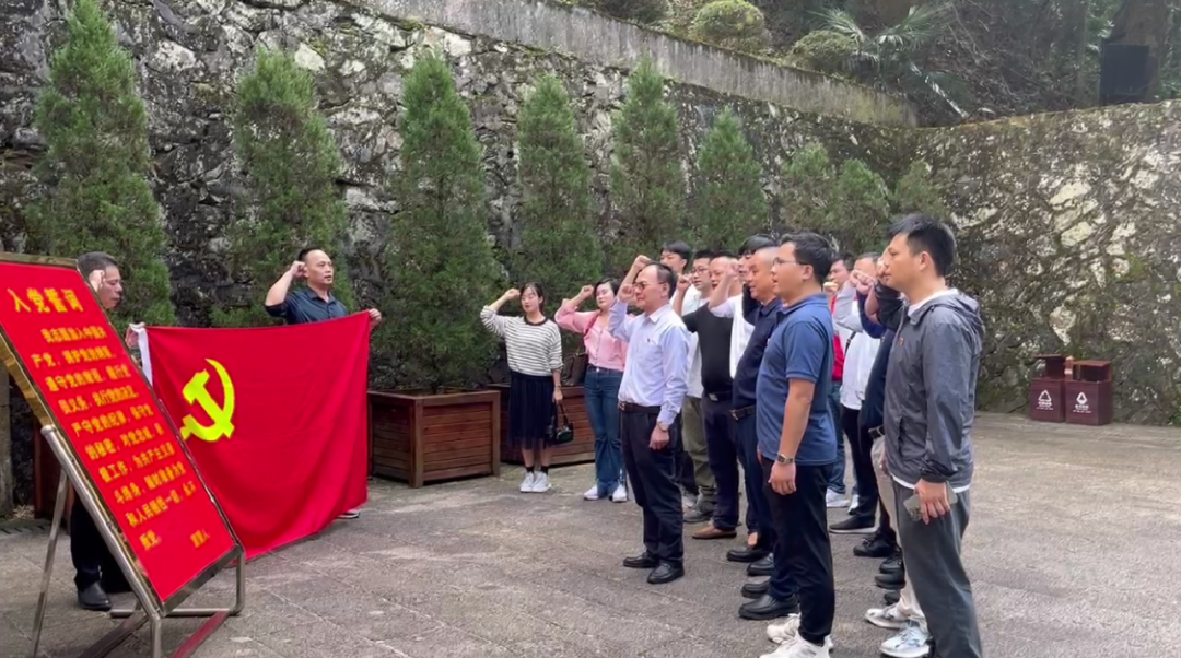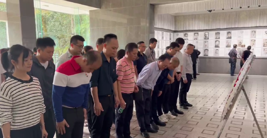 员怀着无比崇敬的心情缅怀老一辈无产阶级革命家,为烈士们敬献花圈,在党旗下重温入党誓词。