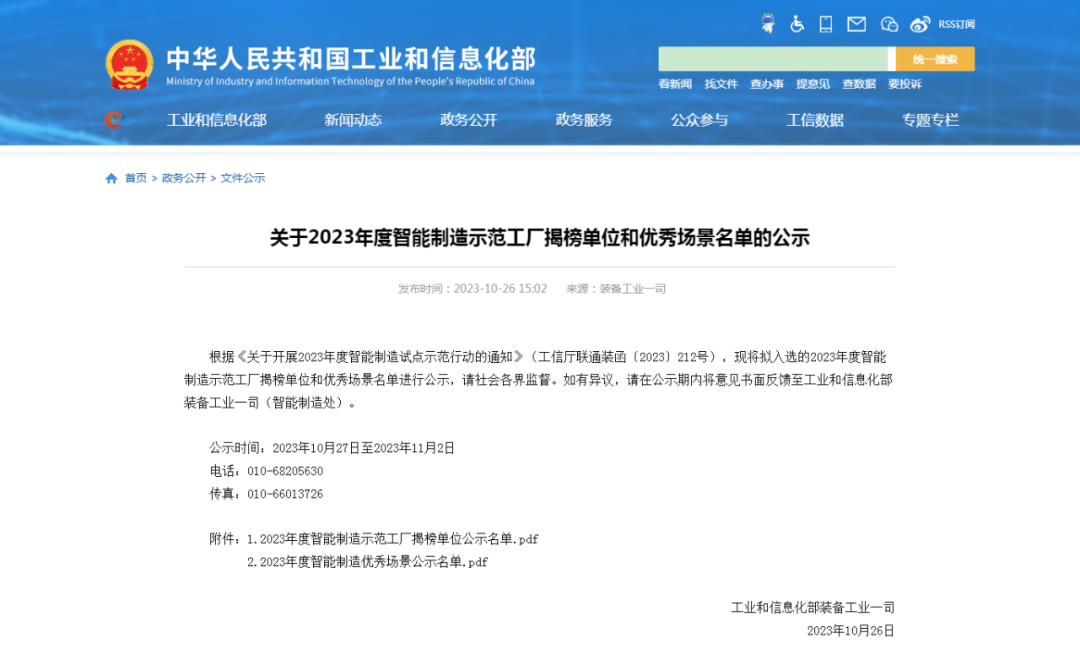 近日,工业和信息化部公布了“2023年度智能制造示范工厂揭榜单位”和“2023年度智能制造优秀场景”名单。