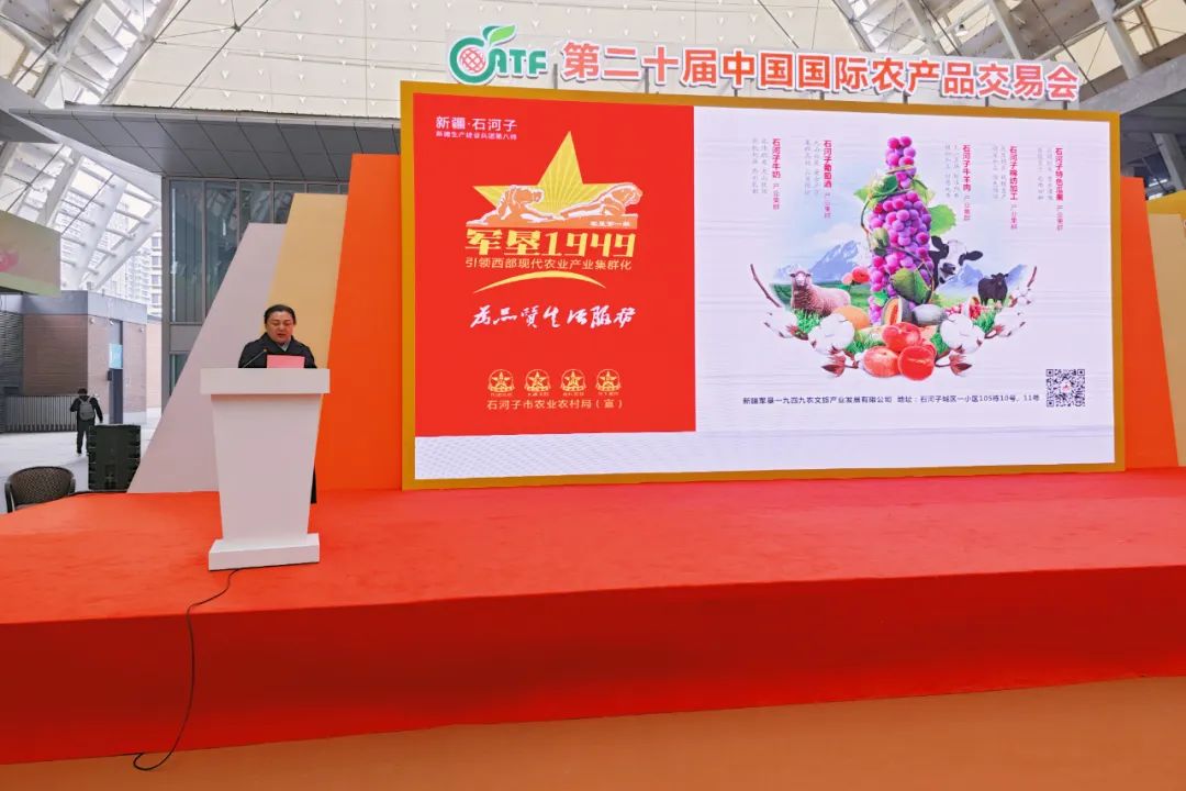 师市党委常委、八师副师长,师市党委宣传部部长魏凤云向国内外嘉宾宣传推介“军垦1949”区域公用品牌,展示师市现代大农业发展情况和特色农产品,诚邀社会各界到师市实地考察、深入对接产业合作。