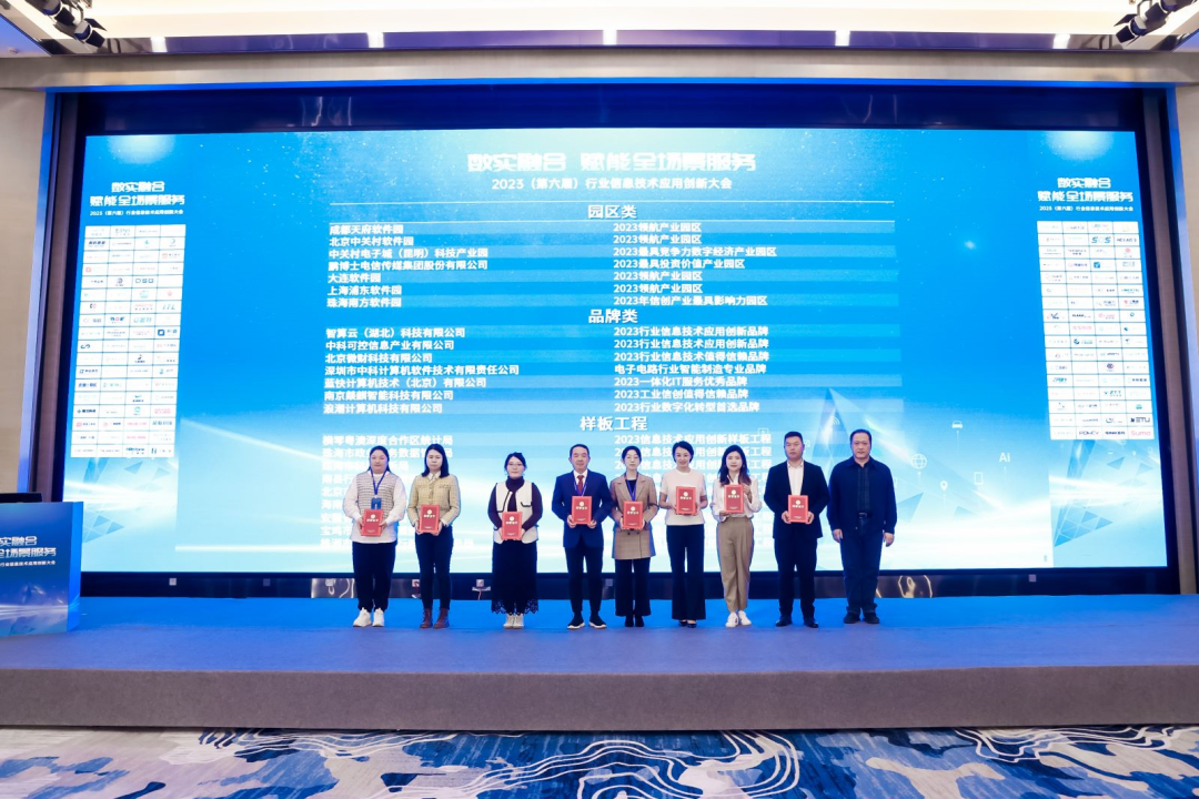 近日,2023(第六届)行业信息技术应用创新大会在北京隆重召开。本届大会以“数实融合 赋能全场景服务”为主题,着重从企业多种业务场景探讨数实融合的可能。会上由赛迪网、《数字经济》杂志、赛迪数通机构调研并发布的《2023行业信息技术应用创新成果》正式揭晓。中电信息旗下南方软件园凭借信创产业特色脱颖而出,获评“2023年度信创产业最具影响力园区”。