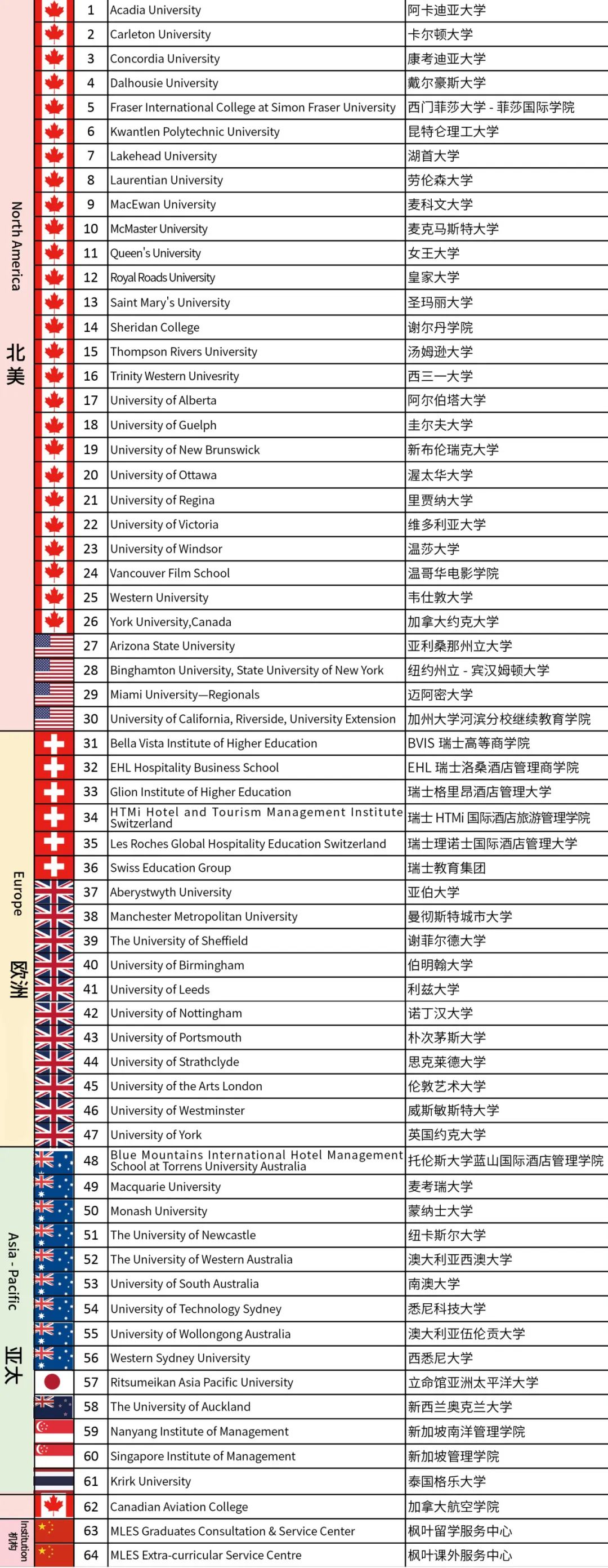 以下为本次参加枫叶国际教育博览会的海内外高校及机构总名录。