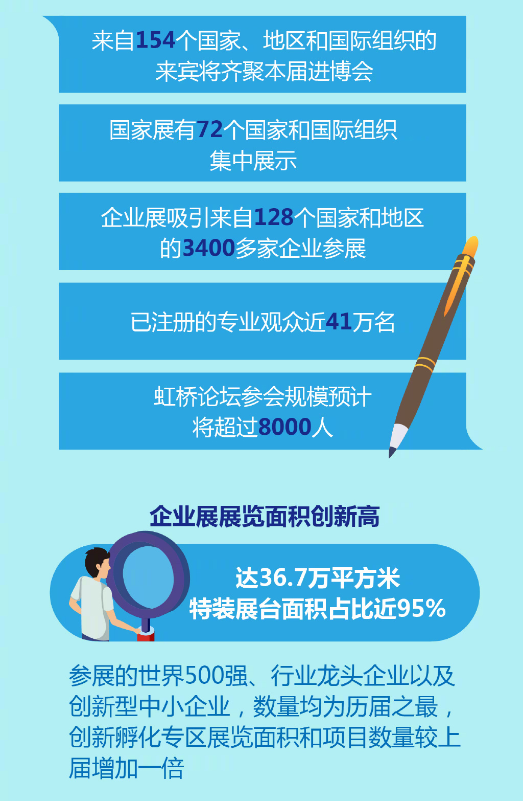 来自154个国家、地区和国际组织的来宾将齐聚本届进博会,国家展有72个国家和国际组织集中展示。