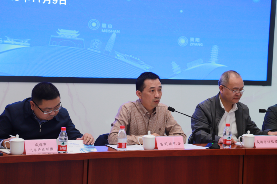 最后,省同城化办创新产业组负责人在讲话中指出,近年来,成德眉资同城化先进制造业专项合作组为推进都市圈产业经济发展开展了大量工作,取得良好成绩,并建议各方充分依托专项合作组工作机制,借助成都都市圈新能源汽车重点产业链牵头单位及专班,围绕今天会议达成的共识,进一步摸清成德眉资四市新能源汽车供应链配套企业情况,进一步深入都市圈开展新能源汽车有关政策、产品、模式等推介,进一步梳理在新能源汽车产销等各环节的合作需求,进一步强化信息沟通促进成德眉资新能源汽车产业发展及推广应用。