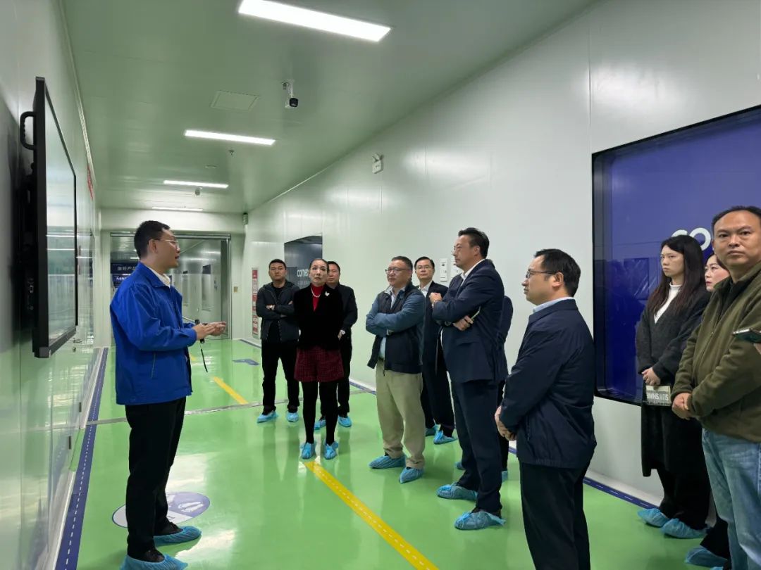 (参观团一行到楚能新能源磷酸铁锂电池产品量产线进行参观交流。)