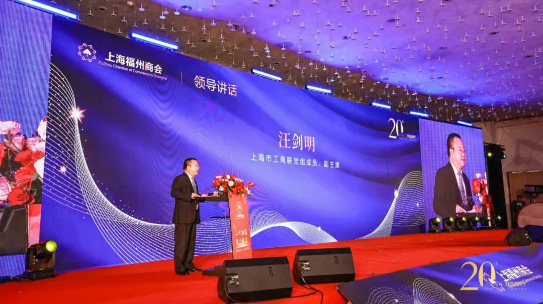 汪剑明在讲话中对上海福州商会成立20周年表示祝贺。他指出,沪榕两地人文交流密切,贸易往来频繁,在中国商业史上留下了浓墨重彩。多年来,在沪榕商企业家为新时代经济发展和沪榕两地深化合作作出积极贡献,充分彰显了广大榕商的家国情怀和使命担当。希望商会在新的里程碑上,一是积极团结会员,不断凝聚思想共识,进一步坚定发展信心;二是积极引导会员,面对时势变化,提高企业治理能力和管理水平,不断增强企业内生发展动力,实现转型升级发展;三是积极服务会员,进一步为会员做好信息、科技、融资等服务工作,推动沪榕两地经贸发展,发挥桥梁纽带作用。