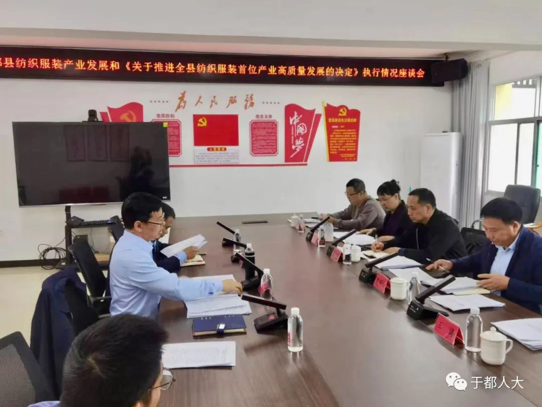11月10日,县人大财经委、县人大常委会预算审查工委联合组成检查组对我县纺织服装产业发展和于都县第十六届人民代表大会第六次会议审议通过的《关于推进全县纺织服装首位产业高质量发展的决定》执行情况开展跟踪检查。