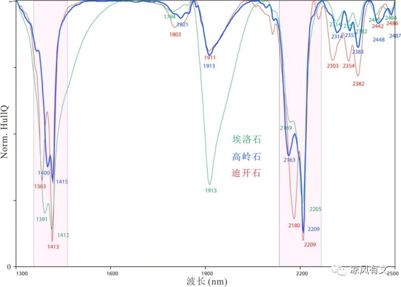 图5 高岭石族矿物SWIR光谱特征吸收谱线(Chang ZS, 2011; 张世涛, 2018)