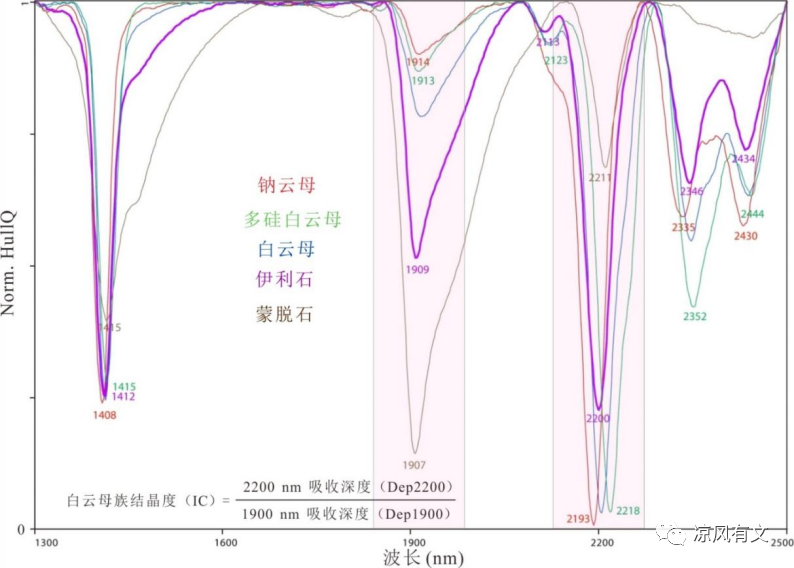 图4 云母类和蒙脱石SWIR光谱特征吸收谱线(Chang ZS, 2011; 张世涛, 2018)