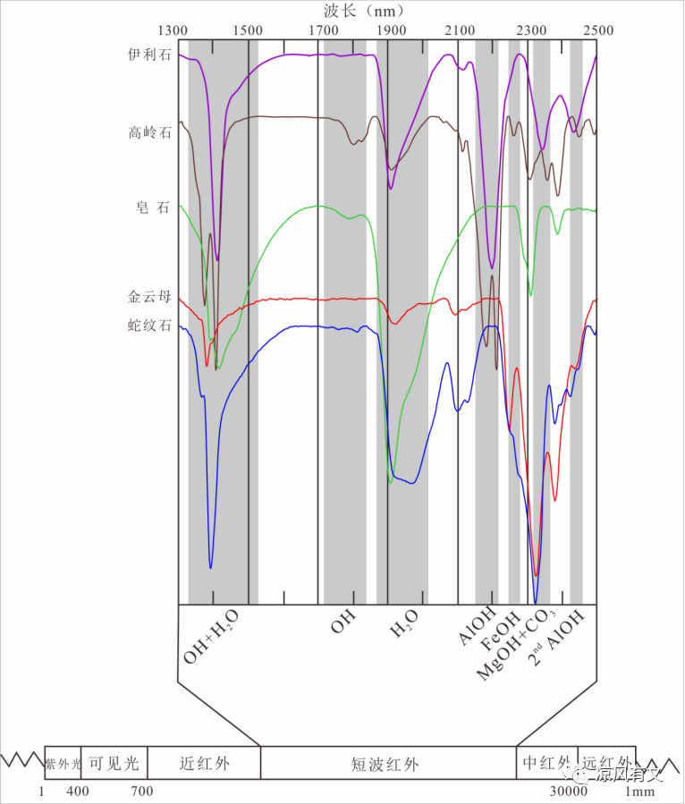 图3 绿泥石族矿物SWIR光谱特征吸收谱线(Chang ZS, 2011; 张世涛, 2018)
