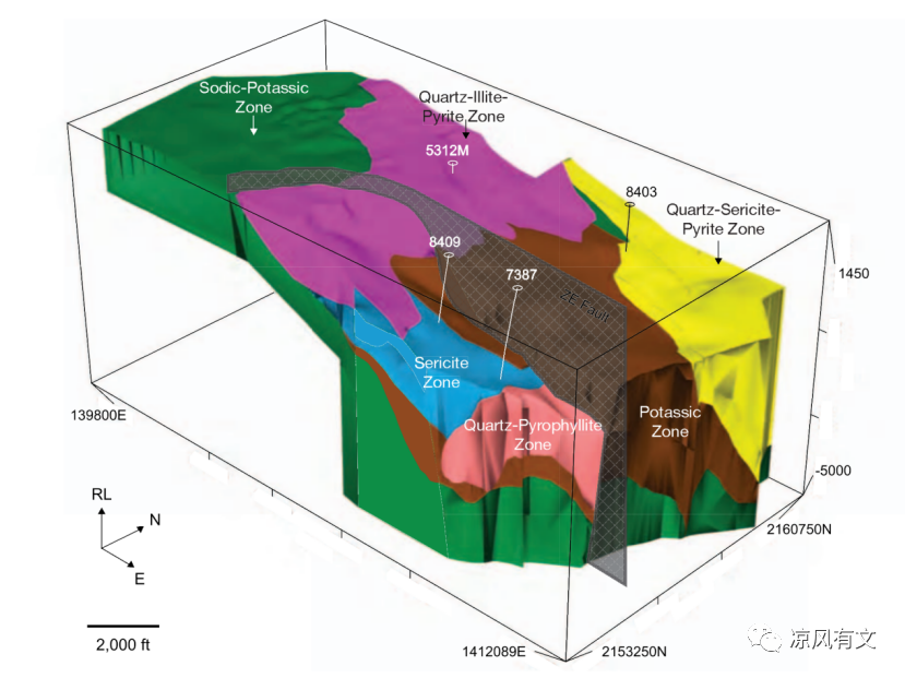 图1 阿拉斯加Pebble斑岩铜金钼矿床三维蚀变模型图(Harraden et al., 2013)