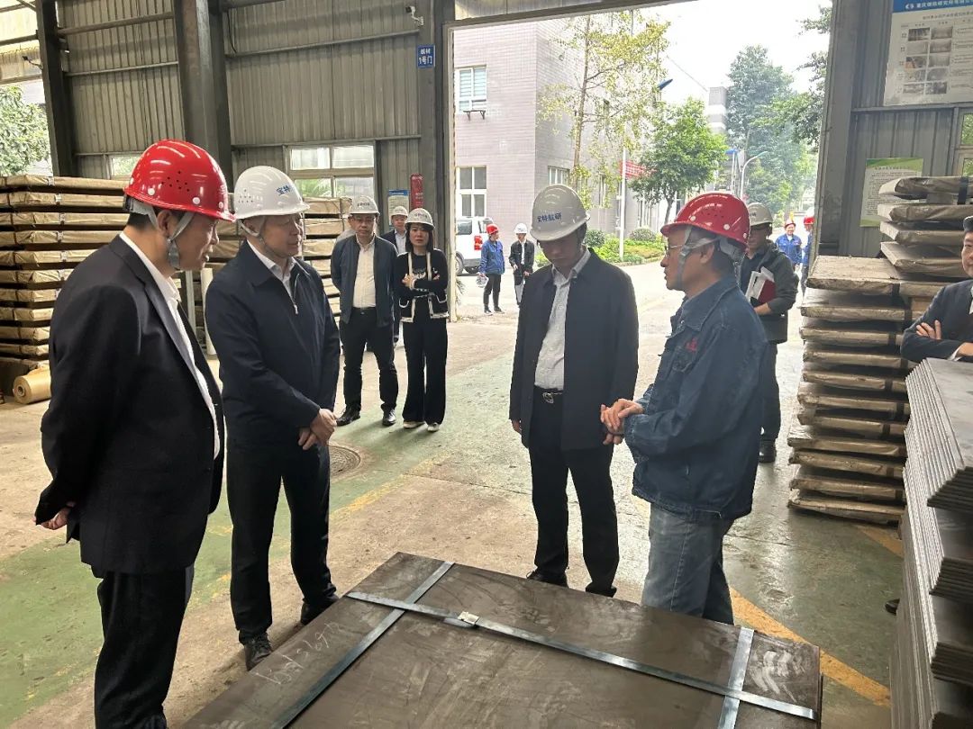 王涛一行先后深入宝武特冶航研科技有限公司航材事业部、板材事业部、杨军创新工作室和重庆三木华瑞机电有限公司等生产一线实地调研。