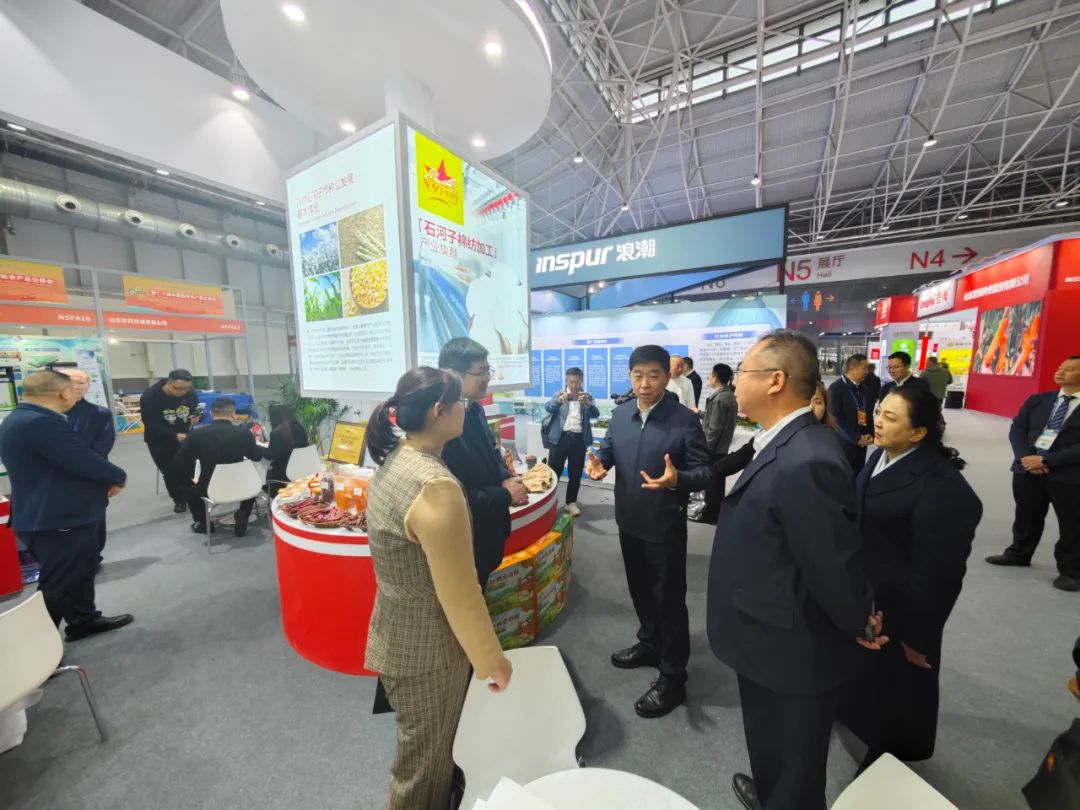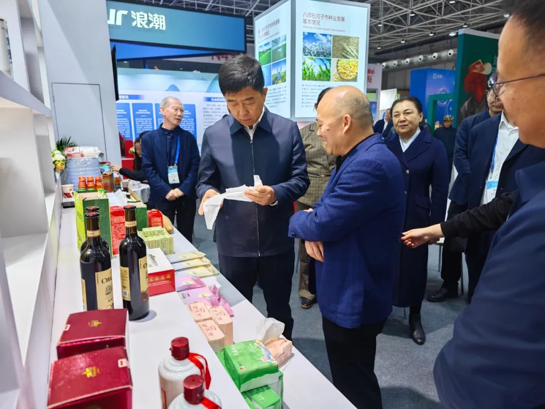 11月9日下午,师市党委书记、政委鄂宏达来到第二十届中国国际农产品交易会“军垦1949”区域公用品牌展区巡展。
