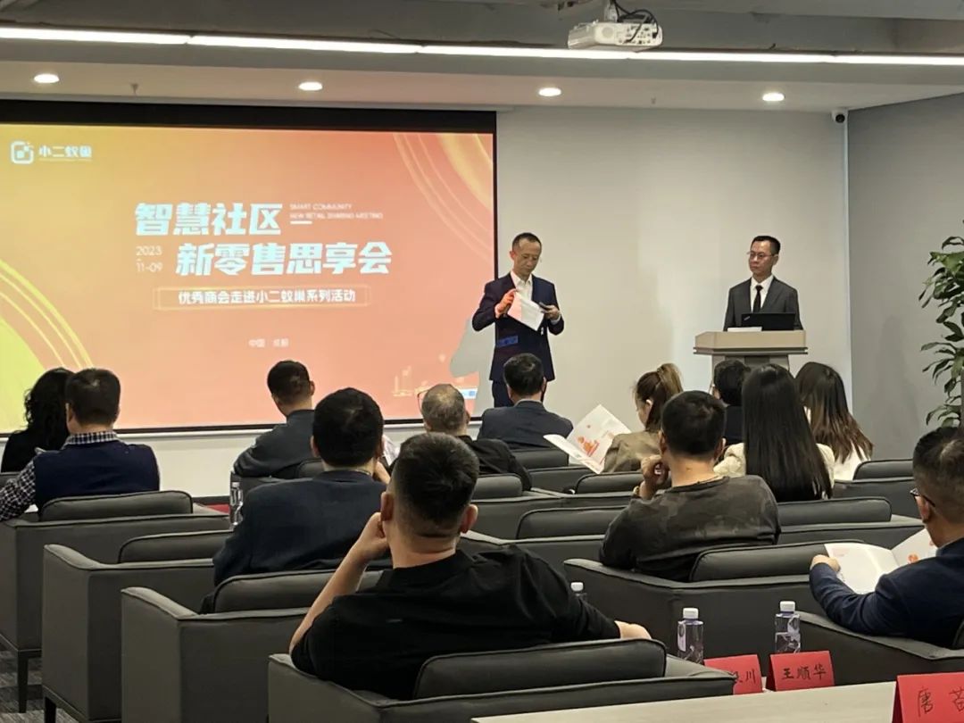 2023年11月9日,一场关于智慧社区新零售的思享会在小二蚁巢公司圆满举行。金泉街道投促部曹文、四川银行温江支行行长王小凤、铜梁商会会长及成都千嘉科技有限公司党委书记赵勇、四川省智慧城市数字科技创新促进会执行会长杨志刚等多位领导参加此次活动。活动旨在分享智慧社区新零售的最新动态、探讨行业发展趋势。