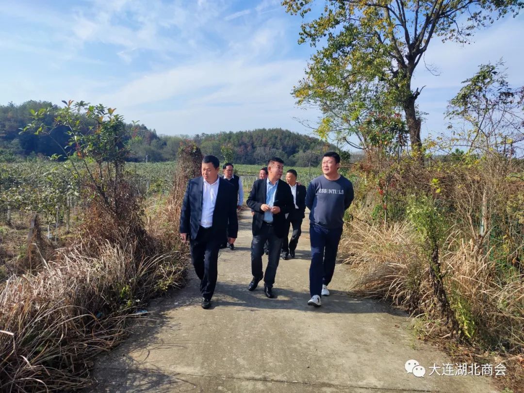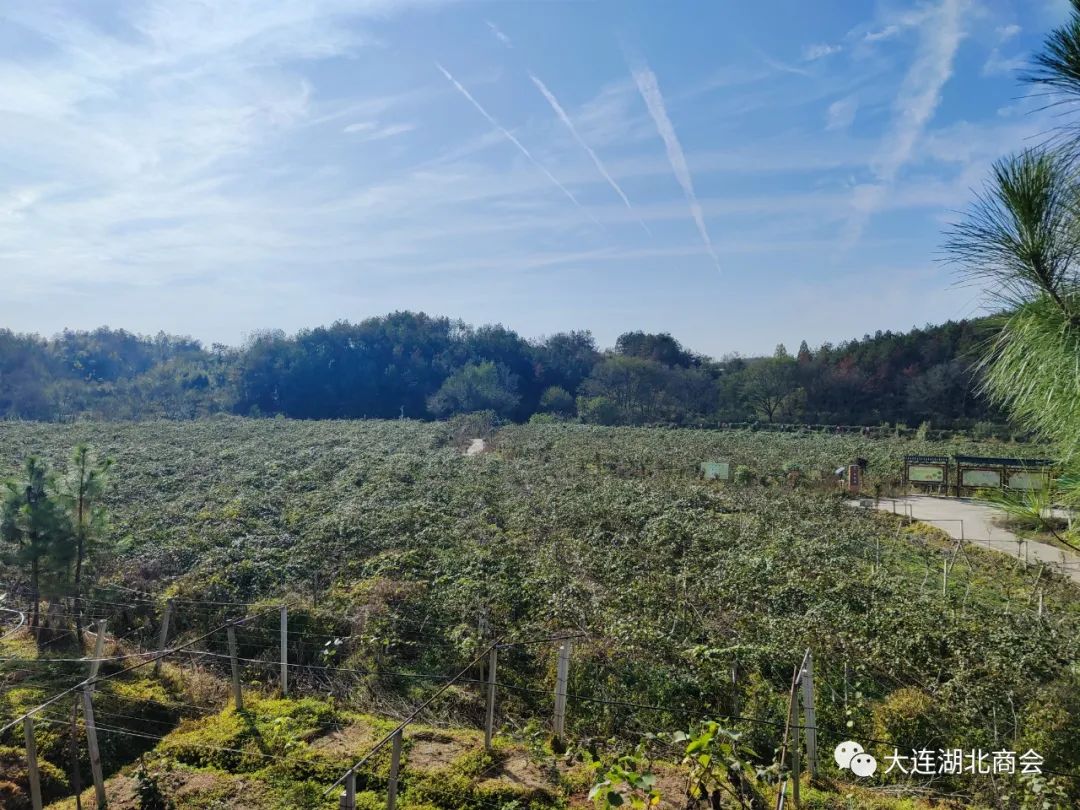 下午,秘书处陪同参会的三位执行会长和沈阳市湖北商会会长付三林参观商会执行会长郭文惠在家乡浠水的湖北闻慧农业科技生态产业有限公司--猕猴桃园。