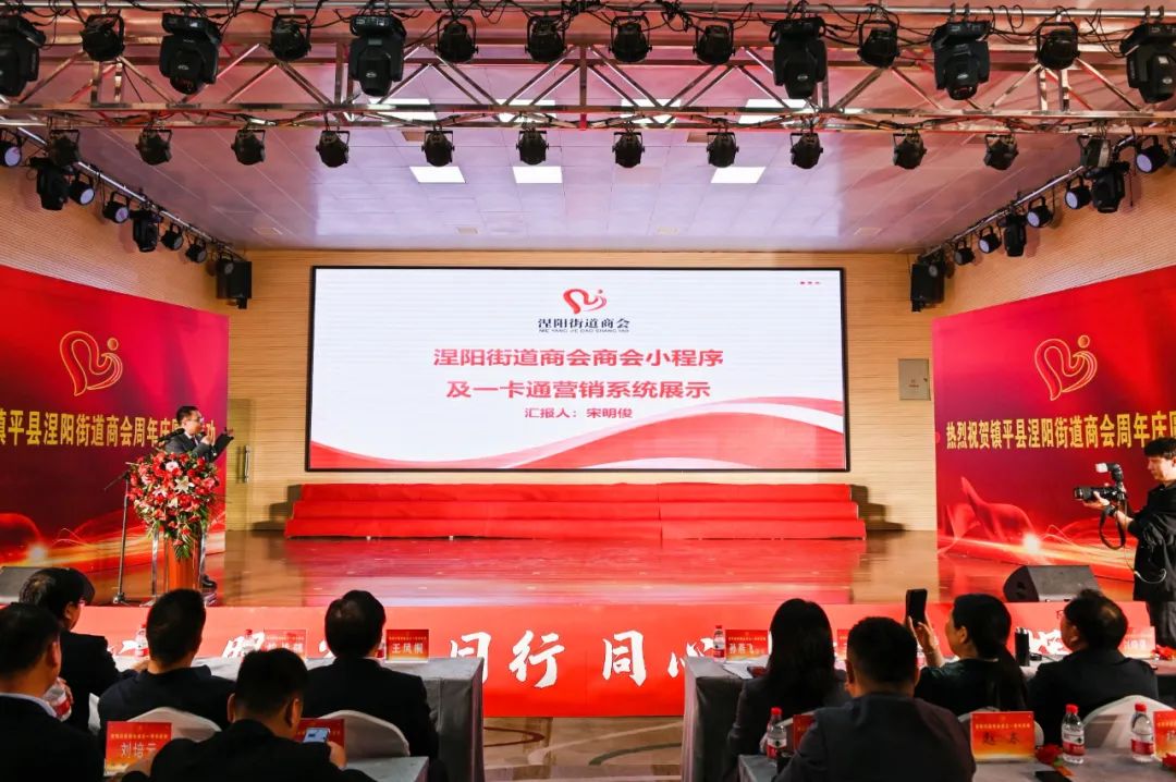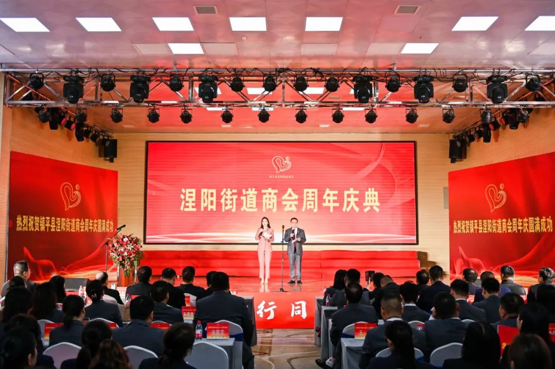 11 月 9 日上午,镇平县涅阳街道商会周年庆典暨商会“一卡通”小程序发布会在梧桐树新经济产业盛大举行,来自涅阳街道商会 40余家会员企业参与,现场300余人共同见证这一高光时刻。镇平人民政府副县长王凤桐、县委统战部副部长刘玉恒、县工商联主席王文博、涅阳街道办事处主任刘海洋以及相关部门领导、兄弟商会负责人应邀出席出席。