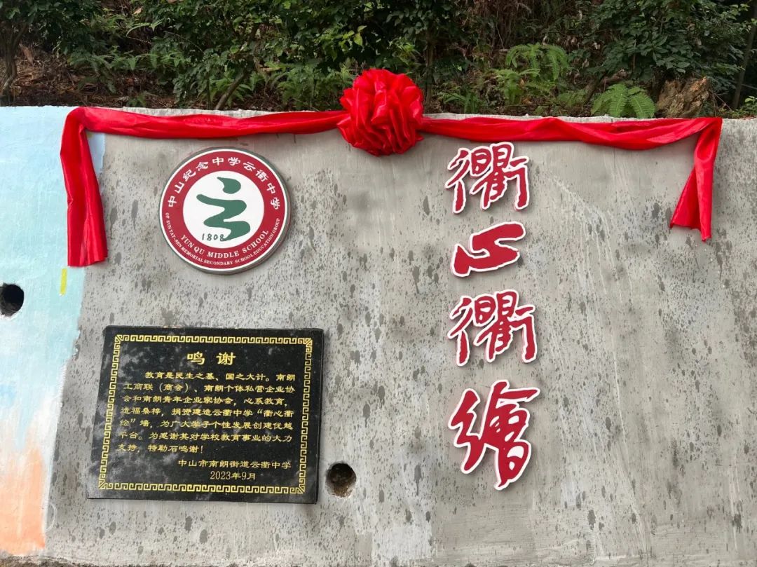 为了进一步加强校园文化建设,优化校园育人环境,提高学生的艺术素养,11月10日,由中山市南朗工商联(商会)、南朗个体私营企业协会、南朗青年企业家协会捐资建造的“衢心衢绘”主题绘墙在纪中云衢中学进行揭幕仪式,南朗街道办事处副主任吴慧祺、南朗街道教体文旅局局长李惠兴,南朗街道教育和体育事务中心主任陈敏华、云衢中学党总支书记倪政平、校长李拥民、南朗商会党支部书记、常务副会长阮海山、南朗个体私营企业协会会长林志伟、南朗青年企业家协会执行会长梁海山、南朗商会副会长林子慧参加揭幕仪式。