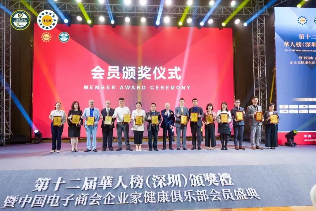 2023年11月8日晚,第十二届华人榜 (深圳)颁奖礼暨中国电子商会企业家健康俱乐部(下简称“企业家健康俱乐部”) 会员盛典在深圳登喜路国际大酒店隆重举办。森铭集团作为企业家健康俱乐部会员单位,受邀参加该盛典,并被授予“优秀会员”荣誉称号。